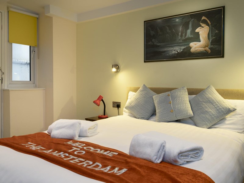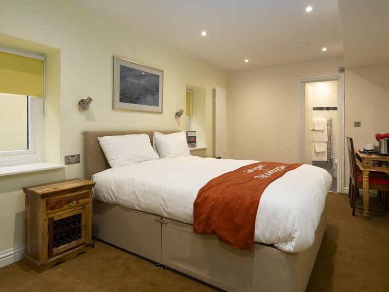 This generous double room is located on the lower ground level, featuring windows that allow natural light to brighten the space. Accessible via stairs or lift, it includes an en suite bathroom with a shower, toiletries, complimentary Wi-Fi, tea and coffee making facilities, a large LED TV, an iron and ironing board, and a hair dryer. Due to its location, the room is priced more affordably, though it may experience some overhead noise. Complimentary ear plugs are provided, but these rooms might not be ideal for light sleepers.