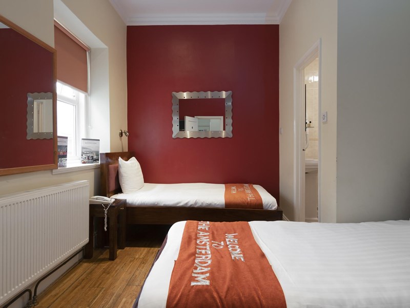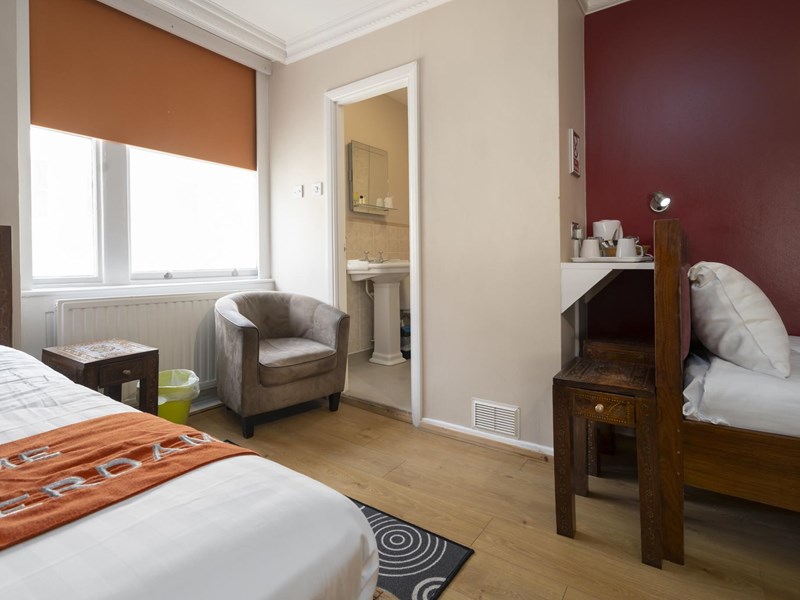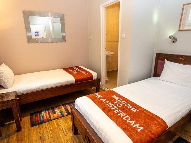 Our Twin Rooms features two single beds and an en-suite bathroom with a walk-in shower. The room also includes a flat-screen TV, tea and coffee making facilities, a hair dryer, and an iron with an ironing board. Enjoy a peaceful rear view from your room.